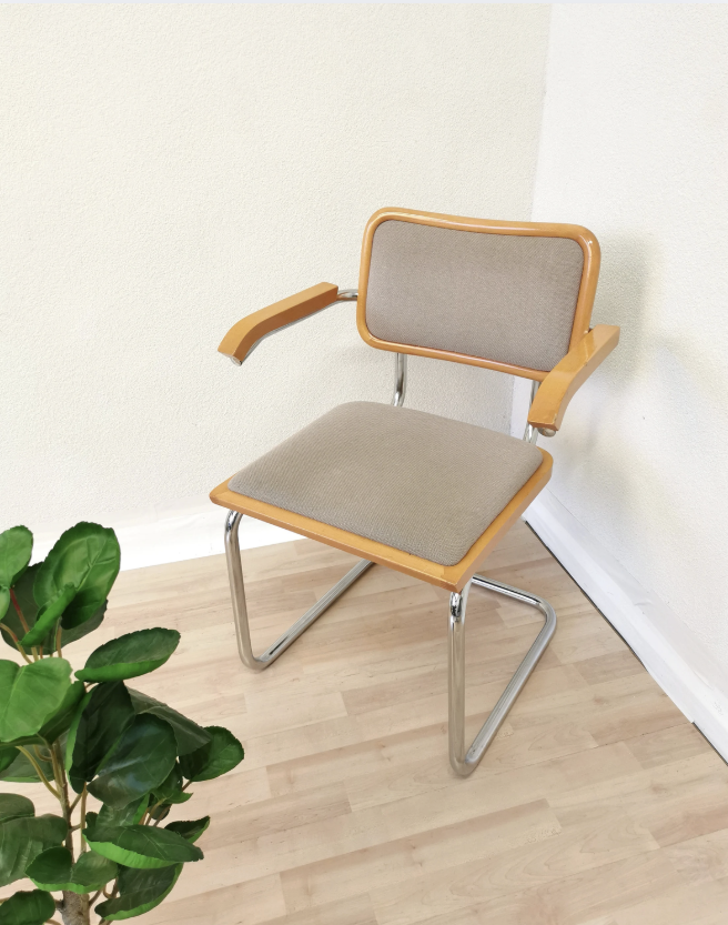 Foi Marcel Breuer, aos 26 anos, quem concebeu a Cesca. Jovem, ousado e profundamente influenciado pelos princípios da Bauhaus, Breuer buscava uma estética que rompesse com as tradições do mobiliário europeu. Naquele contexto, a madeira maciça ainda dominava, e móveis eram frequentemente pensados como objetos robustos e ornamentados. Breuer caminhou na direção oposta. Inspirado na leveza das bicicletas, ele acreditava que o aço tubular permitiria criar formas novas, mais fluidas e funcionais. O nome da cadeira, aliás, carrega uma delicadeza rara. Cesca vem de Francesca, sua filha. Um gesto íntimo que contrasta com a racionalidade modernista. A peça, assim, combina técnica e afeto desde sua origem.
