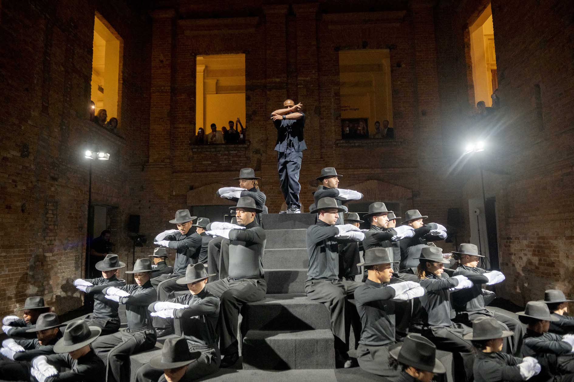 Para marcar a ocasião, a Maison romana apresentou uma performance inédita do coreógrafo francês Sadeck Berrabah, conhecido por suas composições geométricas e hipnóticas, ao lado da bailarina brasileira Ingrid Silva. Juntos, criaram uma coreografia com quarenta bailarinos locais — um diálogo entre técnica e emoção, embalado por uma trilha inspirada no ritmo do funk. Ingrid abriu o espetáculo com um solo envolvente, conduzindo o público a um instante de pura sincronia e transcendência.