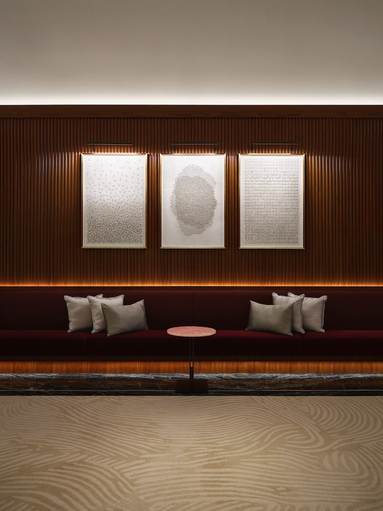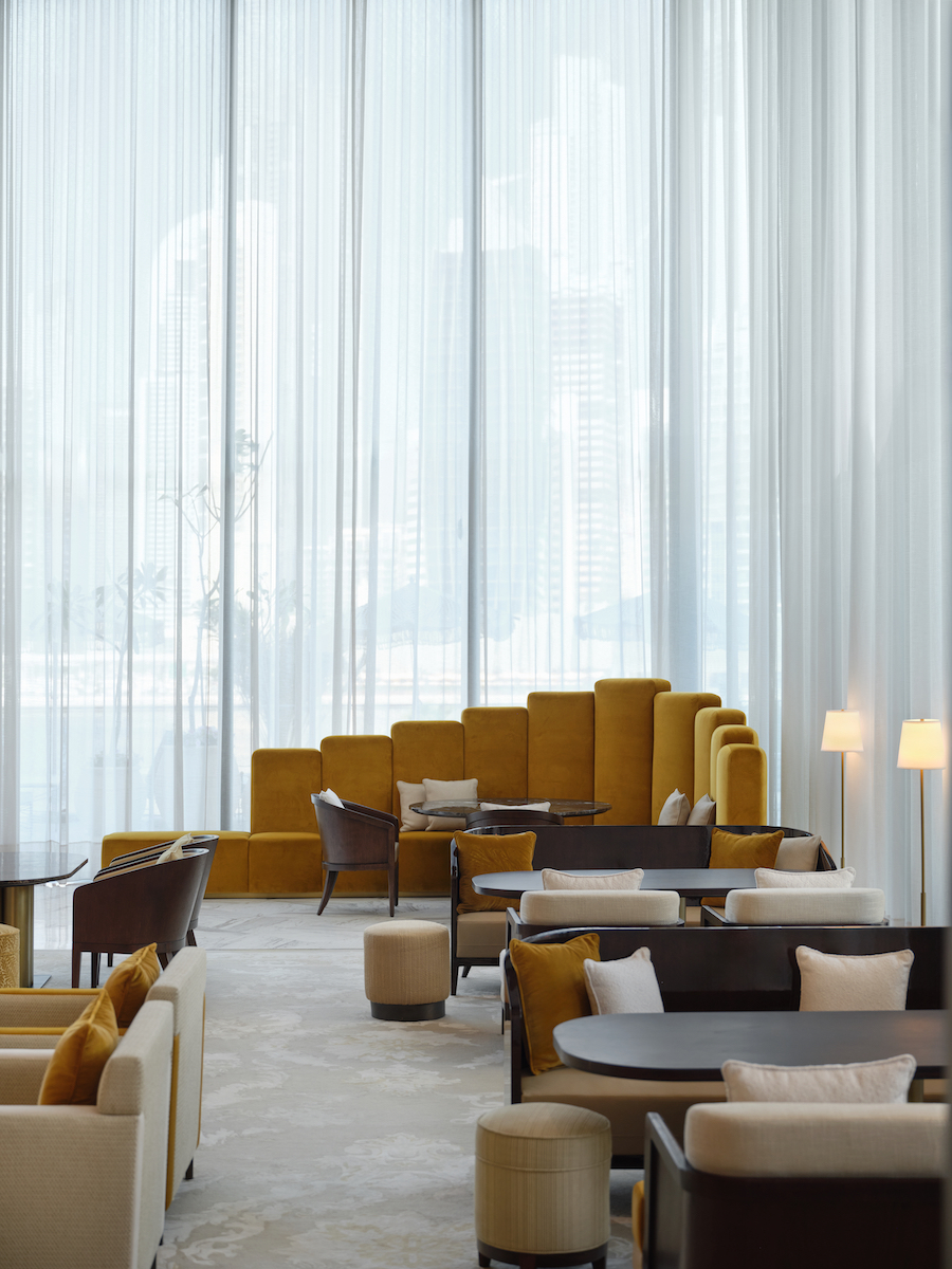 O edifício, concebido pelo SOM, foi descrito como “uma peça lapidada de cristal”, eco arquitetônico da essência da marca. Se o Baccarat levou a herança francesa ao palco nova iorquino, o The Lana em Dubai trouxe um novo diálogo. Primeiro hotel da Dorchester Collection no Oriente Médio, com arquitetura do Foster + Partners e interiores de Gilles & Boissier, o projeto exigiu sensibilidade cultural e sofisticação. Inaugurado em 2024, o The Lana tem 225 quartos, mobiliário sob medida do estúdio, obras de arte selecionadas e o primeiro Dior Spa da região. O design aqui não busca pastiche, mas ressonância, um olhar parisiense afinado com a luz e a escala do Golfo.